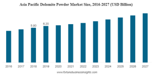 According to Fortune Business Insights, The global dolomite powder market was valued at USD 25.41 billion in 2019 and is expected to grow to USD 33.44 billion by 2027, reflecting a CAGR of 3.8% during the forecast period. Asia Pacific led the market in 2019, accounting for 24.4% of the global share. In addition, the U.S. dolomite powder market is anticipated to reach USD 7.56 billion by 2027, supported by increasing usage across construction, agriculture, and steel manufacturing industries. The growing use of dolomite in the steel industry is predicted to enable healthy growth of the market, states Fortune Business Insights, in a report, titled “Dolomite Powder Market Size, Share & Industry Analysis, By Type (Calcium Dolomite, and Magnesia Dolomite), By Application (Steel-making, Cement Industry, Agriculture, Glass, Ceramic, Rubber, and Others), and Regional Forecast, 2024-2032.”